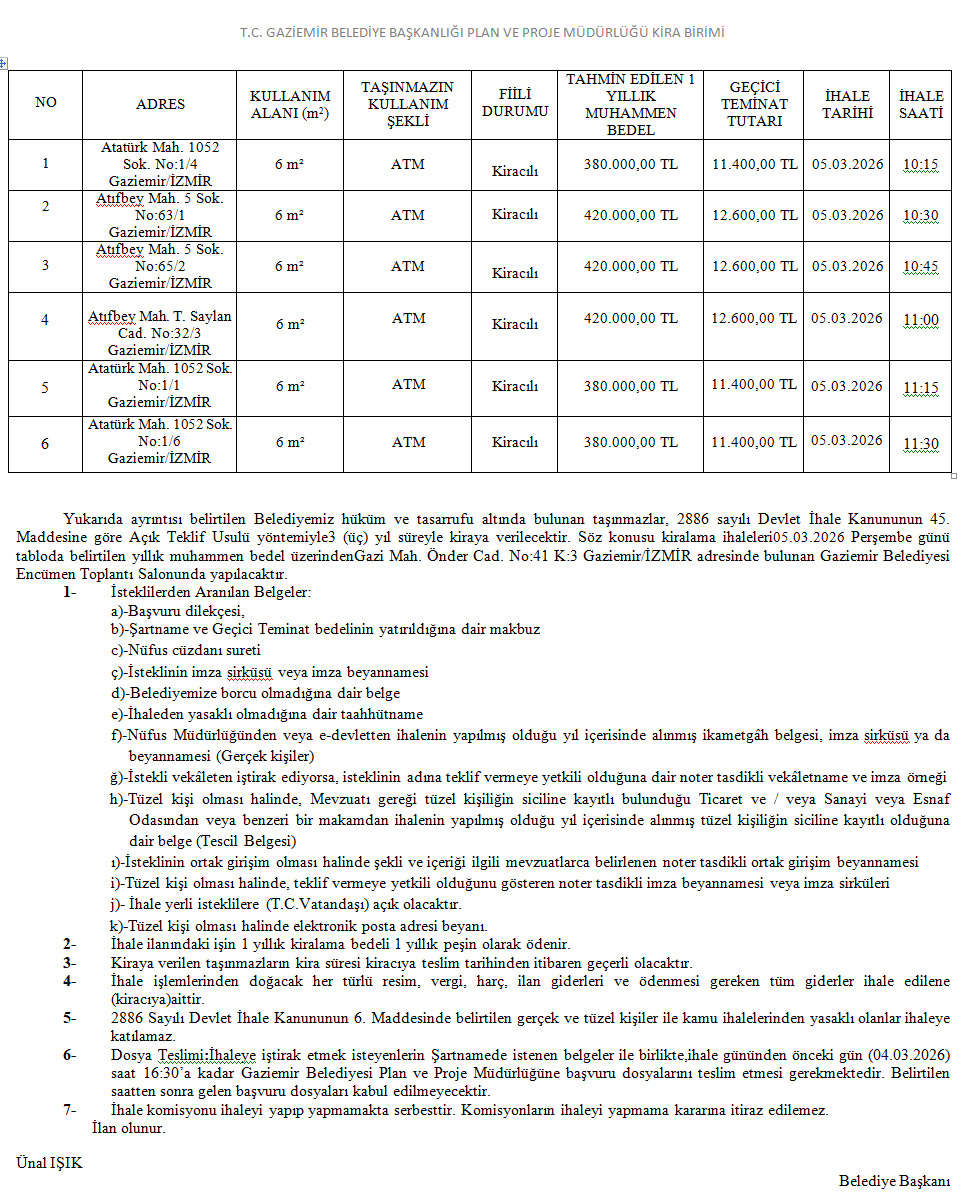 • 6 Adet Atm Kiralama İlanı